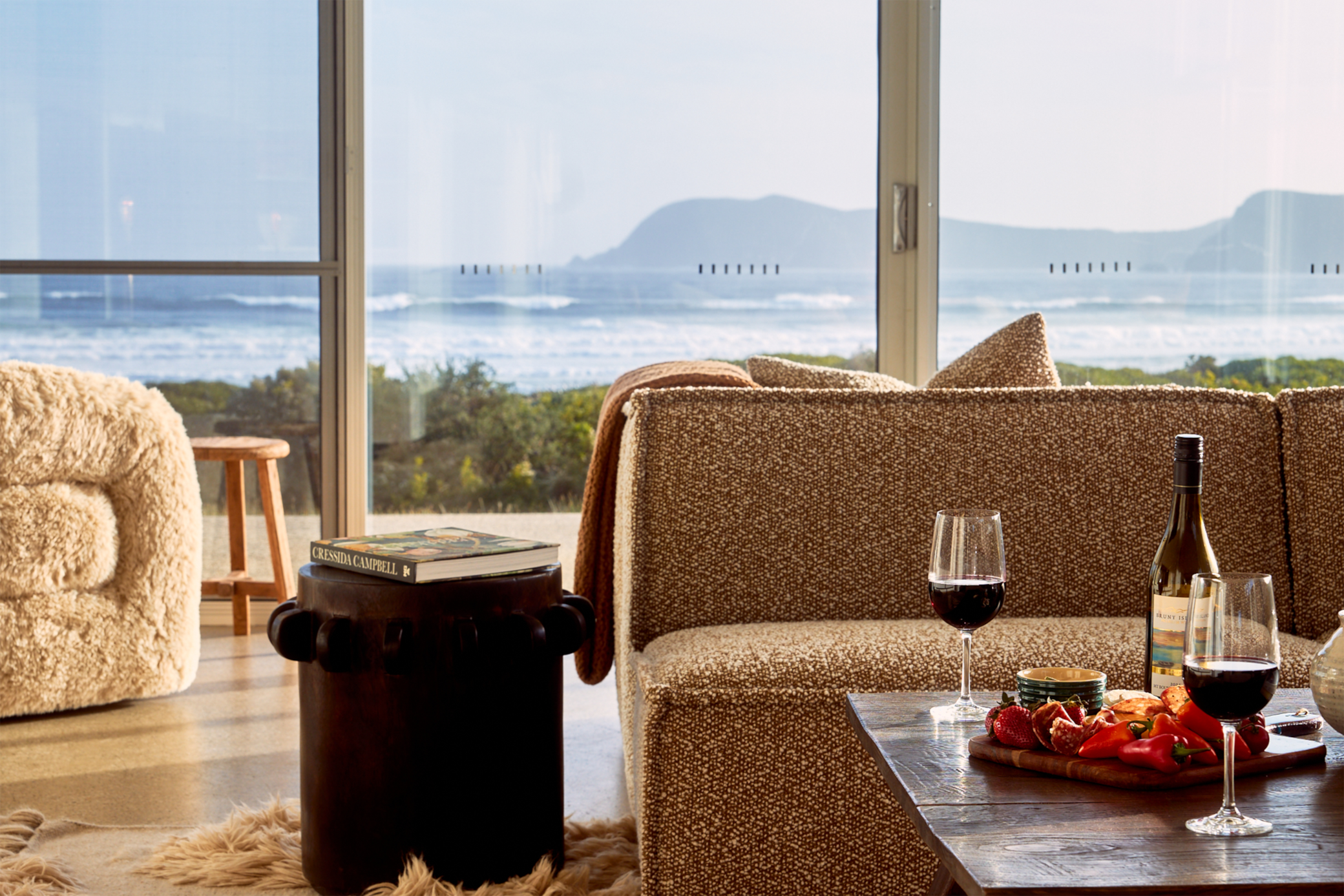 Watch the waves crash ashore from the floor-to-ceiling windows while you curl up by the fire with a glass of wine, or step outside to stargaze over the wintry vistas. Offer includes: two-night stay for up to 2 people, three complimentary bottles of wine, $20 Lunawanna Cafe voucher.